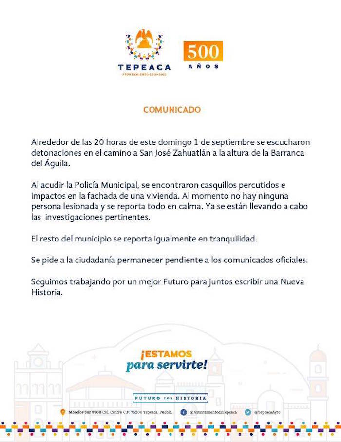 Aunque inicialmente el municipio de Tepeaca reportó que no había lesionados, información extraoficial y de vecinos indica que hubo al menos dos muertos.