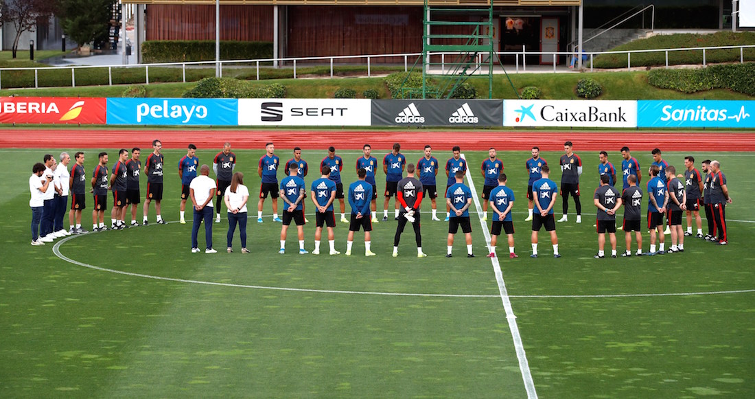 Todos los internacionales españoles a los que hasta la renuncia de Luis Enrique por la enfermedad de su hija dirigía el técnico asturiano, más el cuerpo técnico y el personal de la Real Federación Española de Fútbol que trabajó con él, se situaron en torno al círculo central del campo principal de entrenamiento para guardar un minuto de silencio pleno de emoción.
