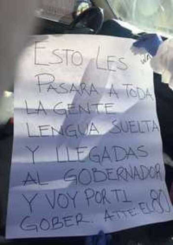 “Esto le pasará a toda la gente lengua suelta y llegadas (sic) al gobernador y voy por ti gober. Atte: El 80”. Este es el mensaje que se lee en la cartulina retratada en el expediente.
