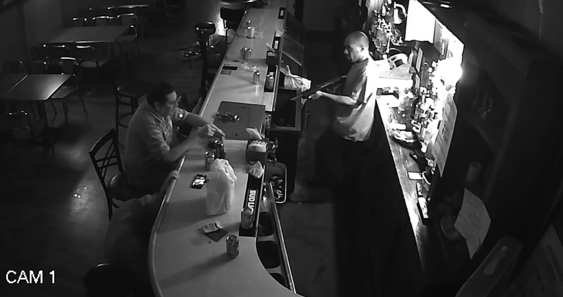 En el video puede apreciarse el momento en el que el mesero se encuentra retirando un plato y una servilleta de la mesa, pronto el asaltante aparece vistiendo gorra y sudadera; al percatarse del sujeto sospechoso, toma el plato y comienza el atraco.