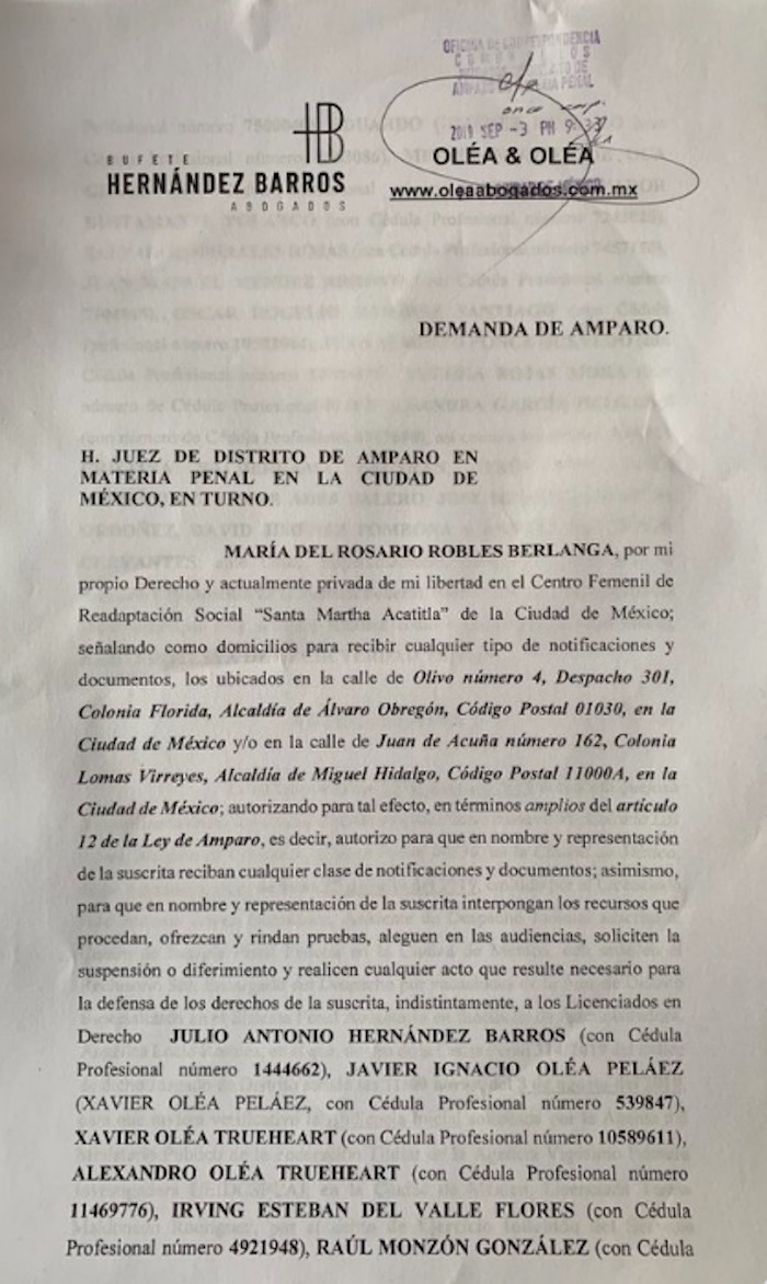 Los abogados de Rosario Robles, ex titular de la Sedatu y Sedesol en el sexenio de Enrique Peña Nieto, presentaron un amparo en contra del Auto de Vinculación a Proceso dictado por el Juez Felipe de Jesús Delgadillo Padierna. En el escrito se hace todo un seguimiento de las anomalías desde el inicio del proceso.