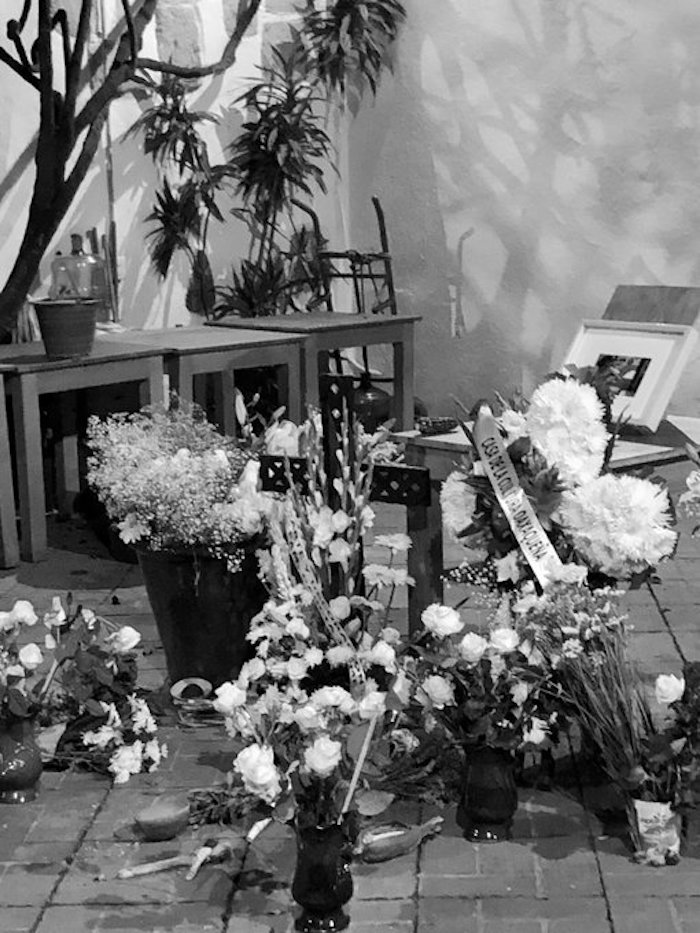 Cerca de la media noche, el instituto creado por Toledo abrió sus puertas a las personas que asistieron con flores y veladoras para honrar al también defensor de diversas causas sociales. En el patio del lugar se colocó una mesa con una fotografía del artista zapoteco. La música, coronas de flores blancas y velas acompañaron el retrato.
