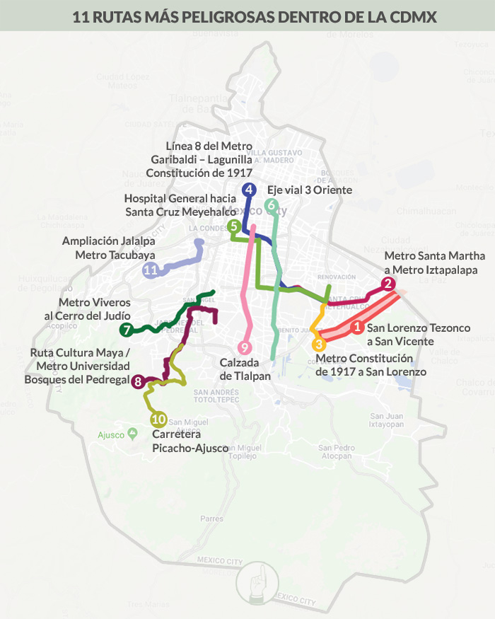 LAS 11 RUTAS MÁS PELIGROSAS DENTRO DE CDMX