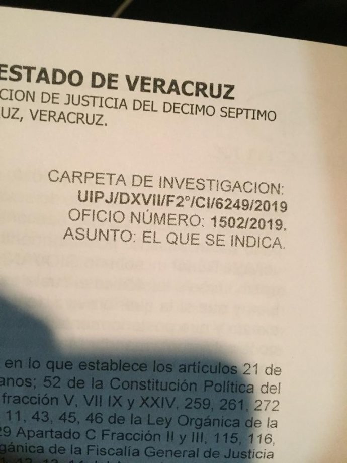 Por la desaparición de la señora su familia acudió ante Fiscalía Regional del Estado en Veracruz donde quedó registrada la no localización de Leidy bajo el Oficio No. 1502/2019 y la carpeta de investigación: UIPJ/DXVII/F2o/CI/6249/2019.