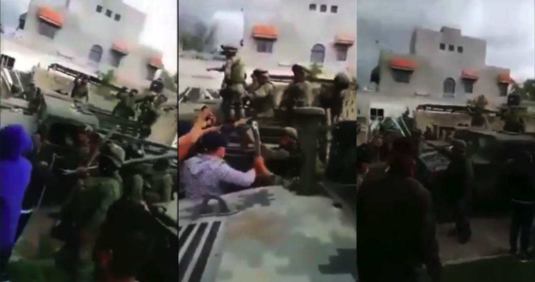 Después de algunos insultos y gritos, comienzan a golpearse con varas hasta, aparentemente, los civiles lanzaron disparos por lo que los elementos castrenses repelieron la agresión.