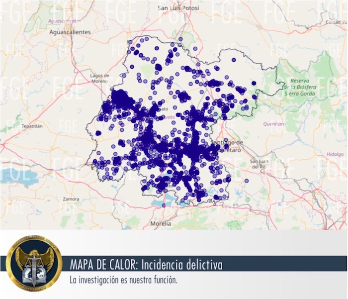 Pero gran parte del estado aún se encuentra en disputa. Hay regiones y municipios que han pasado del control de un cártel a otro, en espacios de tiempo relativamente cortos. De acuerdo con los mapas de calor que empezó a publicar la Fiscalía General del Estado (FGE) en sus redes sociales, esta situación se presenta en Irapuato, León, Salamanca y Celaya.