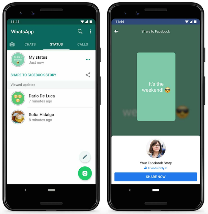 La nueva función permite a los usuarios compartir en Facebook Stories y otras aplicaciones su estado de WhatsApp, una publicación que dura 24 horas. Para ello, sólo debemos ir a la sección "Mi estado" y pulsar el botón "Compartir en la historia de Facebook" o el símbolo de compartir, si deseamos enviarlo a otra red social.