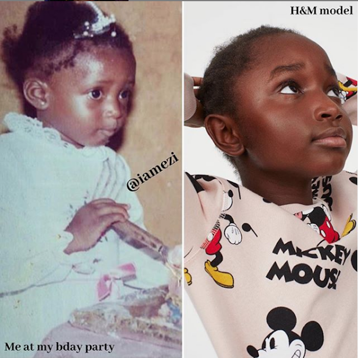 Entretanto, la jefa de Inclusión y Diversidad de H&M, Ezinne Kwubiri, publicó una foto en Instagram en la que defiende la campaña publicitaria mostrándose a sí misma de niña junto a la modelo actual.