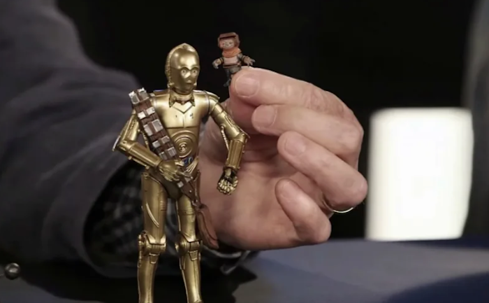 Varios de los actores de la película participaron en este video en directo, que incluyó revelaciones del merchandising de la franquicia. Pero, además de verse a sí mismos de forma de juguetes, también presentaron en primicia dos nuevos personajes que aparecerán en el noveno episodio de Star Wars: Boolio y Babu Frik.
