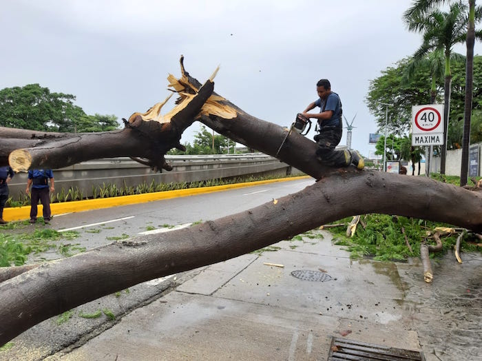 Además, la caída de un árbol ocasionó que un taxi de la ruta Cajeles chocara en la carretera federal Acapulco-Chilpancingo, cerca de la localidad de Dos Caminos del segundo municipio.