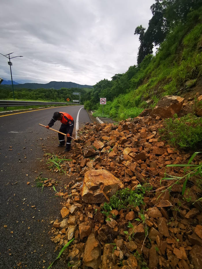 El sábado la circulación vehicular fue cerrada en la Autopista del Sol, en el carril norte-sur con dirección al puerto de Acapulco, debido a un derrumbe cerca del Parque Industrial del Ocotito y ayer habilitaron un carril para que hubiera circulación vehicular de los dos lados, mientras que en la vía afectada continúan los trabajos de remover los escombros.