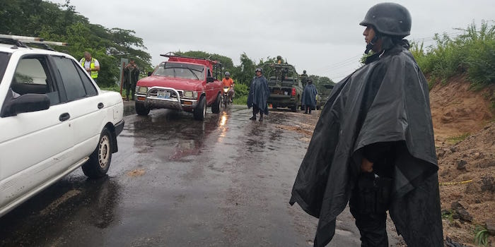 La Policía estatal en atención a automovilistas. Foto: Twitter, @HectorAstudillo.