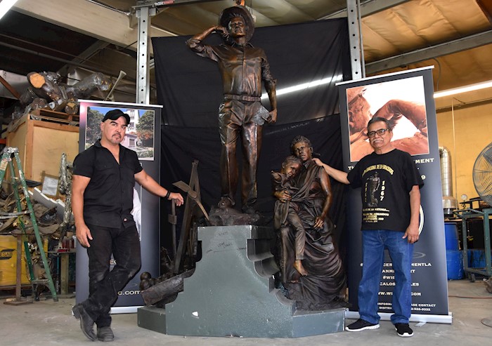 El escultor, ganador de la convocatoria hecha para esta obra, es el autor del monumento en honor al cantautor mexicano Antonio Aguilar, retratado a caballo en la conocida Plaza Olvera, a dos cuadras de donde ahora se levanta el Monumento Bracero.