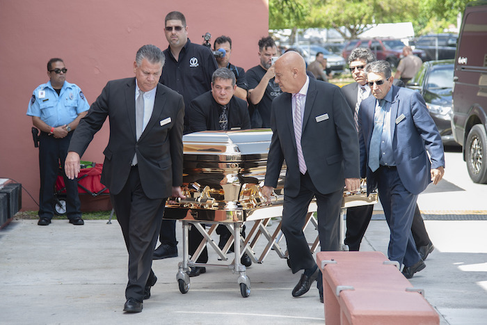 Los restos del astro llegaron en un coche fúnebre negro al Miami Dade County Auditorium, un teatro en el corazón de Miami donde con frecuencia se realizan conciertos de artistas latinoamericanos, al igual que espectáculos de ballet y orquestas sinfónicas.