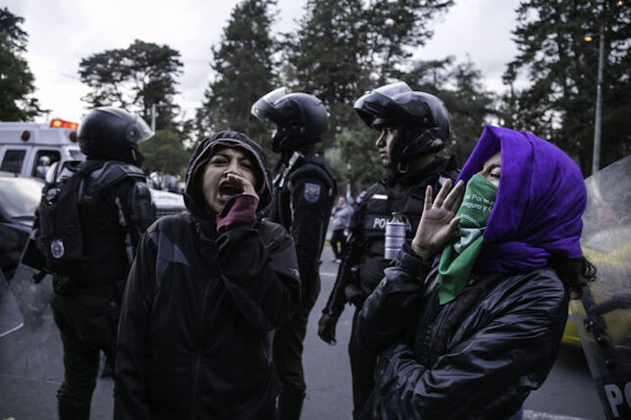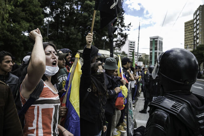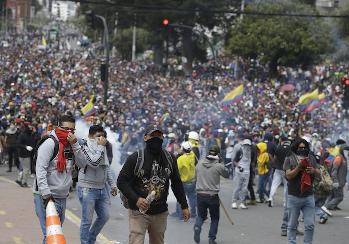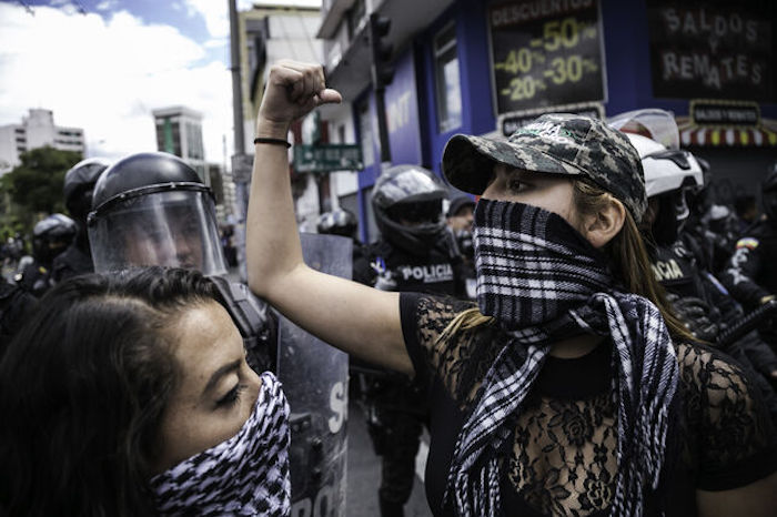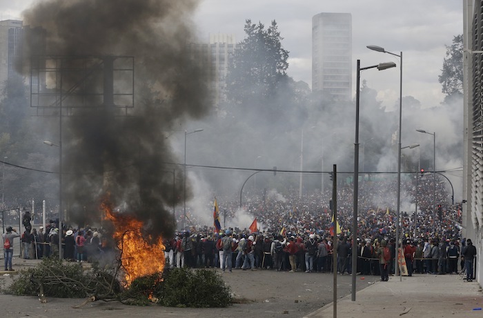 Aquí cerca, hemos visto imágenes terroríficas en estos días: como la de una bandada de motos atropellando a gente a la altura de la Caja del Seguro en Quito; como la de los jóvenes lanzados por un puente, uno de ellos ya ha muerto; como la del compañero que acaban de asesinar en el Arbolito en una brutal arremetida contra mujeres indígenas cargando wawas (niños), gente tratando de descansar y personas apoyando con enseres básicos y curas. Fuera de Quito se siente la fuerza indígena, la fuerza del campo, pero igual, los militares están en una escalada ante el corte de vías, que iniciaron los transportistas, y luego retomaron pobladores y comunidades.
