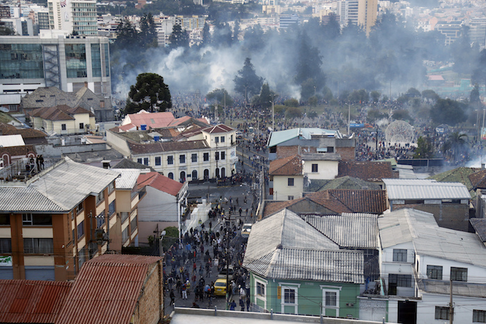 Marcha hacia el Carondelet, hoy espectral Palacio del Ejecutivo, entre gases y más gases; ocupación de la Asamblea Nacional, apenas un tiempo, y posterior desalojo; noticias de personas heridas, detenidas, muertas; reclamos de alimentos y cobijas; y ahora recién toque de queda de 8 pm a 5 am en algunas partes de la ciudad.