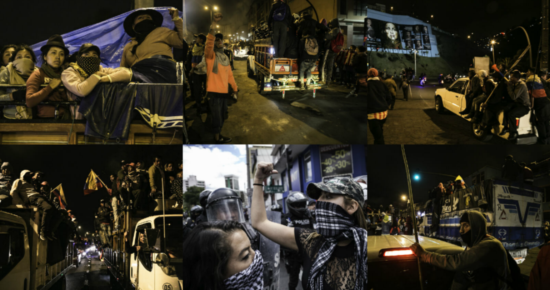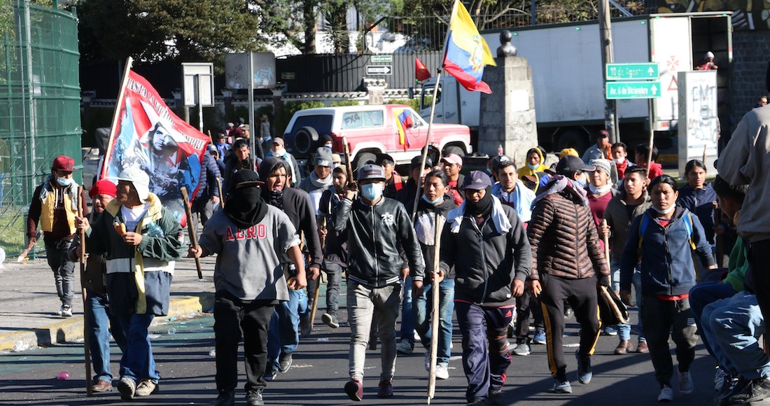Este día, el casco colonial de Quito fue escenario de violentos choques y cargas policiales para dispersar a miles de manifestantes del sector indígena, jóvenes y obreros que secundaron una movilización contra el Presidente, Lenín Moreno, y las medidas económicas de su Gobierno