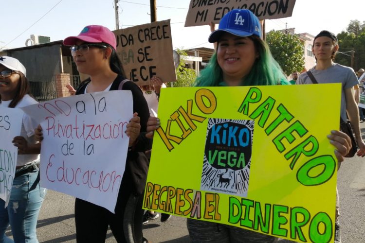 “¡Kiko ratero, regresa el dinero!”, “No recortes nuestra educación, gobierno ¡paga!”, “No a la privatización de la educación”, “No roban dinero, roban mi educación”, se leía en algunas pancartas que sostenían los jóvenes de diversas facultades de la máxima casa de estudios.