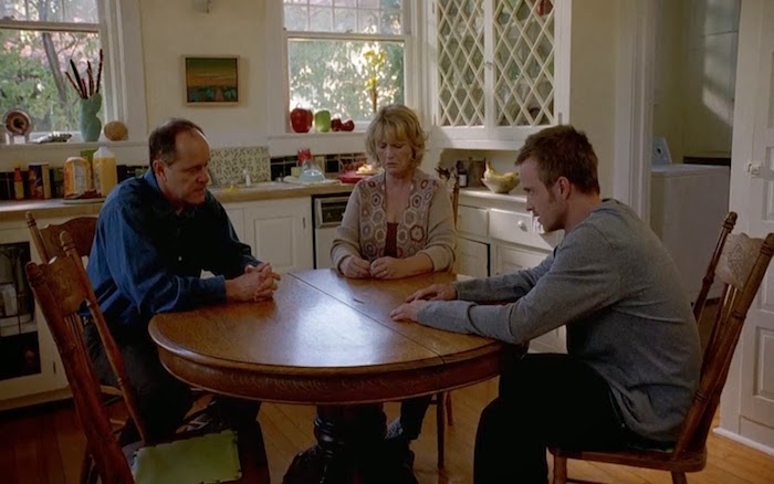 A pesar de la conflictiva relación de Jesse con sus padres, el matrimonio Pinkman termina cediendo a la llamada de su hijo mientras éste sigue intentando huir. Antes, ambos habían aparecido por televisión pidiéndole a Jesse que se entregue.