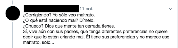 En respuesta a esta publicación, decenas de usuarios han expresado su rechazo contra este tipo de actos de homofobia, pues consideraron que más allá de beneficiar al menor, lo único que se logra es confundirlo más y agrandar el conflicto.