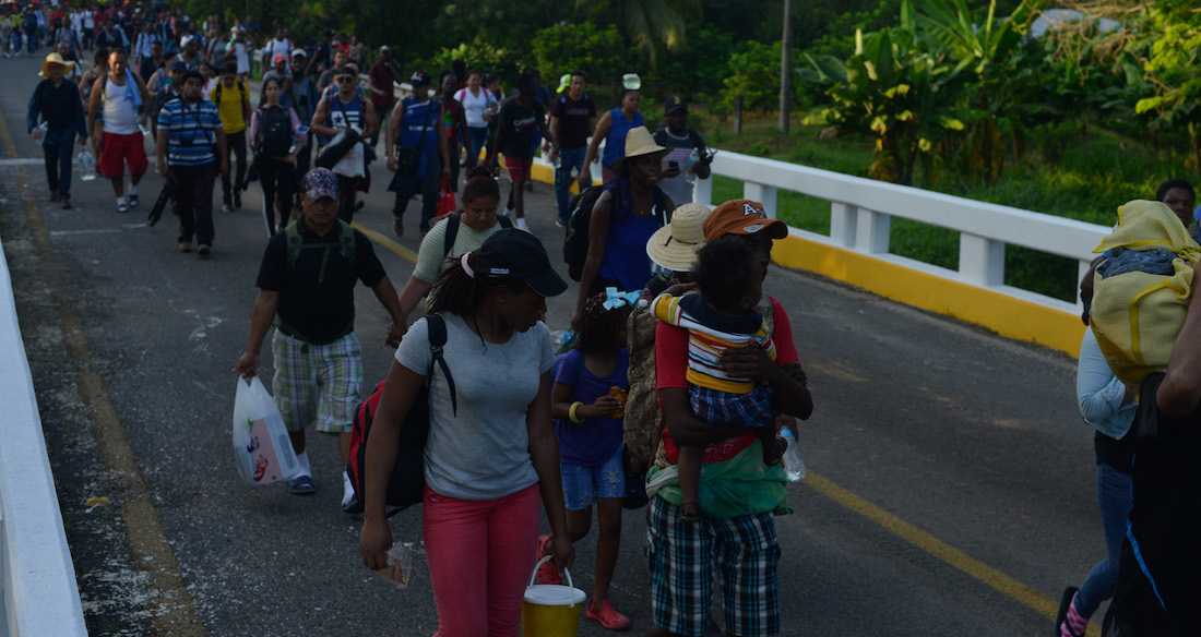 Alrededor de la mitad de los migrantes de la caravana son negros, incluidos haitianos, estimó Lacruz, quien acompañaba al grupo.