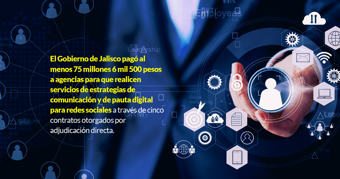 El Gobierno de Jalisco pagó al menos 75 millones 6 mil 500 pesos a estas agencias para que realicen servicios de estrategias de comunicación y de pauta digital para redes sociales a través de cinco contratos otorgados por adjudicación directa.