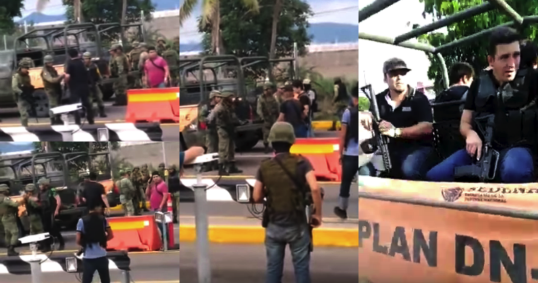 Ahí se ve a un convoy de militares que observan a los civiles fuertemente armados, que al parecer tomaron tráilers. Uno de los delincuentes, quien viste playera negra, se acerca hasta un grupo de tres militares y los saluda de mano, inmediatamente otro sujeto que lleva un casco y chaleco blindado hace lo mismo. Este último además choca su puño con un militar que le responde con el mismo gesto.