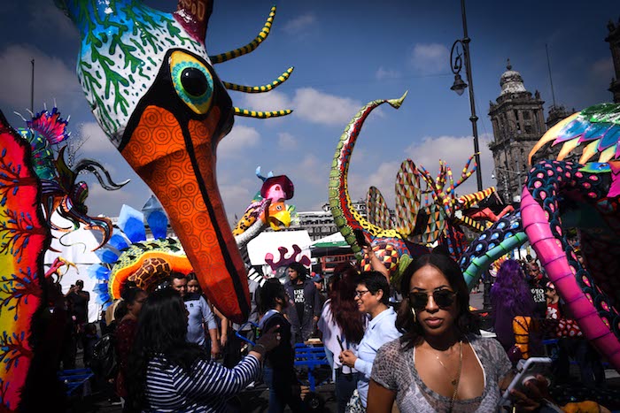 Figuras de catrinas -la famosa calavera mexicana- y dragones coloridos, insectos gigantes, salieron de la plaza central del Zócalo para recorrer la turística Avenida Paseo de la Reforma hasta el monumento al Ángel de la Independencia.