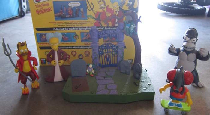 Incluso la empresa Playmates Toys creó cuatro diferentes juegos basados en los especiales y se vendieron en Toys R Us. El primer juego fue en el 200o, "TreeHouse of Horror 1", el cual incluía un cementerio de juguete y cuatro figuras coleccionables como el Diablo, Bart Mosca, El Señor Burns Vampiro, y Homero disfrazado de King Kong; este set se ofrece en eBay por 960.84 pesos.