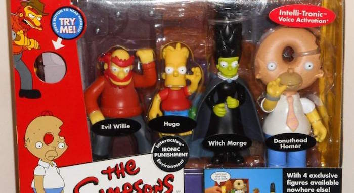 En el 2002 salió "TreeHouse of Horror 3", incluía un juguete basado en la "Irónica Máquina del Castigo del Infierno" mostrado en el cuarto especial, y cuatro figuras coleccionables: Homero con cabeza de dona, Marge Simpson Bruja, Hugo Simpson (el gemelo malvado de Bart) y Willie Invasor de Sueños; el set se ofrece en Internet por alrededor de 1,350 dólares.