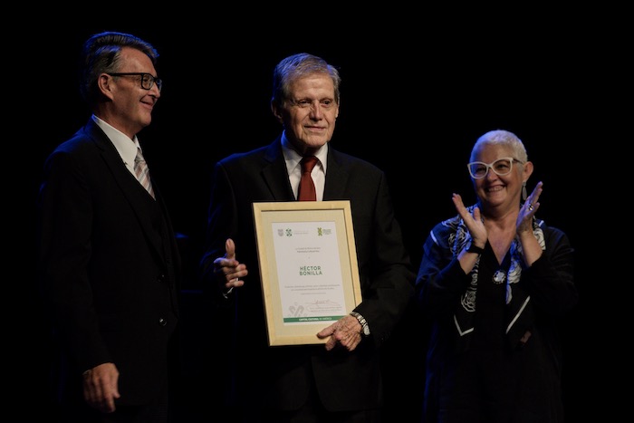 El actor Héctor Bonilla como Patrimonio Cultural Vivo de la Ciudad de México por el Gobierno de la Ciudad de México por su trayectoria en teatro, cine y televisión de 55 años.