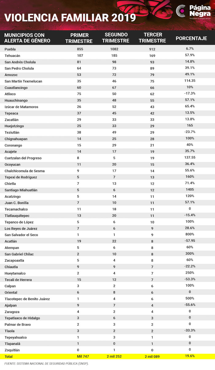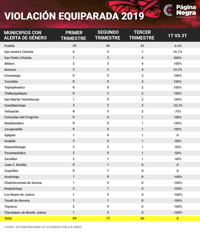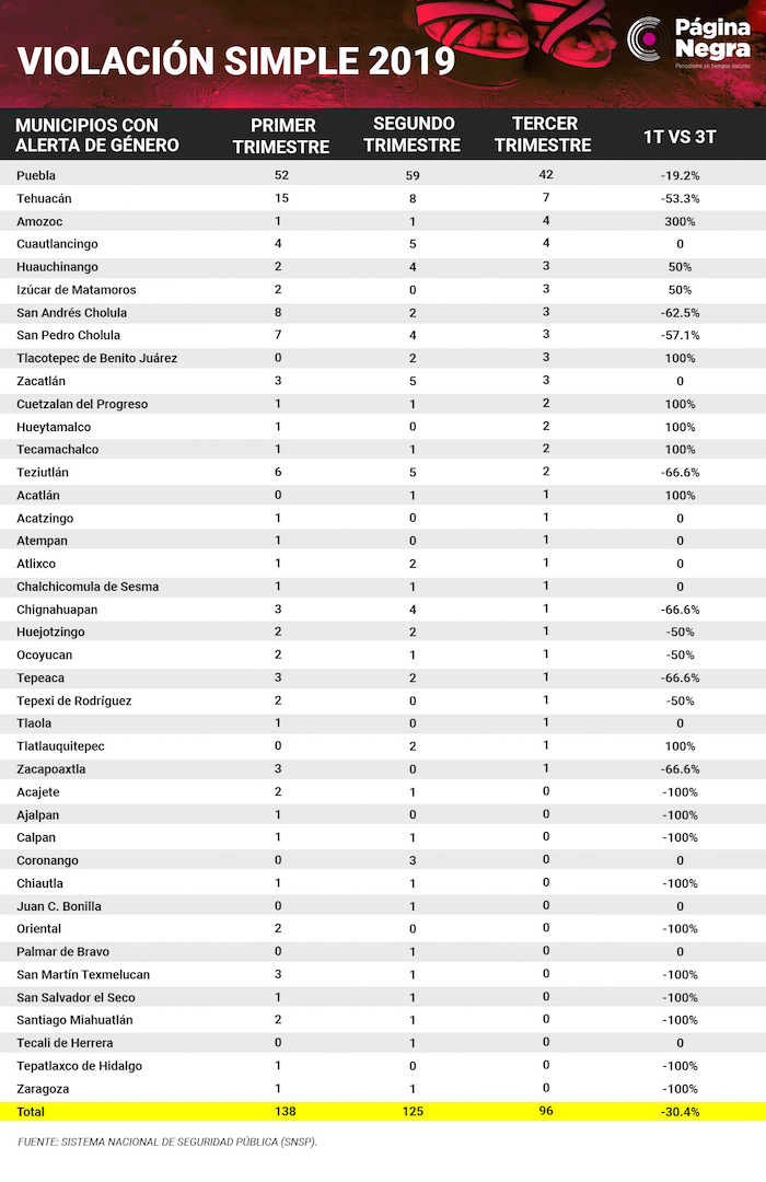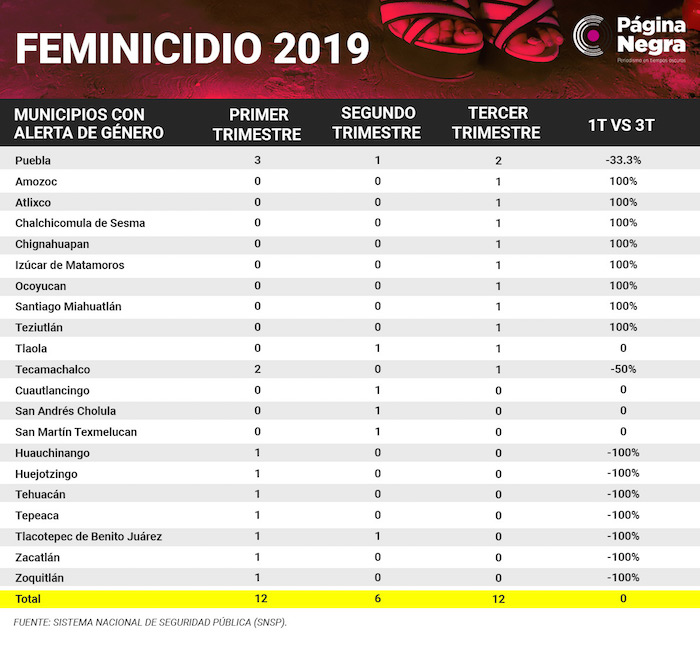 La capital de Puebla se encuentra entre los municipios en Alerta de Género, la cual encabeza la lista negra de todos los delitos contra las mujeres. Sin embargo, reportó una baja en feminicidios y violaciones.