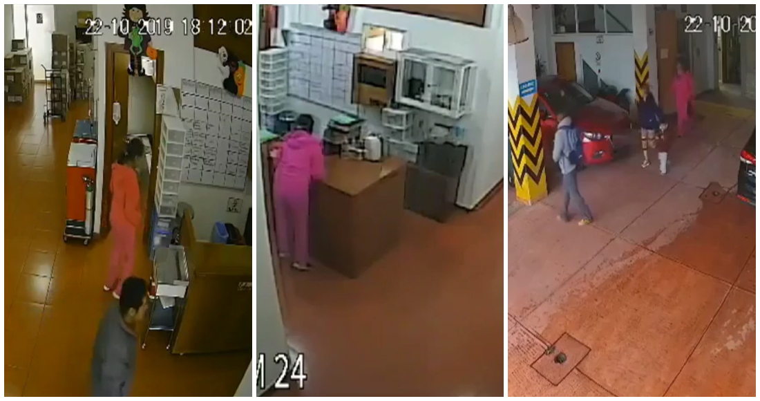 Las cámaras captaron todo su recorrido en el que tranquilamente toman los objetos y luego bajan al estacionamiento para irse sin que nadie se percatara de los hechos ocurridos en la clínica Begusa, en la colonia Francisco Sarabia, en Nicolás Romero.