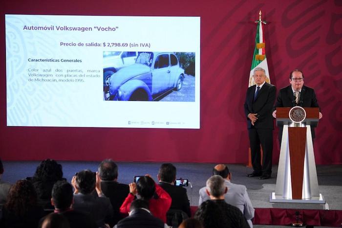 - 24 vehículos, entre ellos, dos embarcaciones: buques. También habrá autos de gama alta “no tan recientes pero atractivos: mustang, jaguar, mercedes (clásicos)” y modelos de lujo de modelo más reciente. Además se subastará un “vochito” con un valor inicial de dos mil pesos.