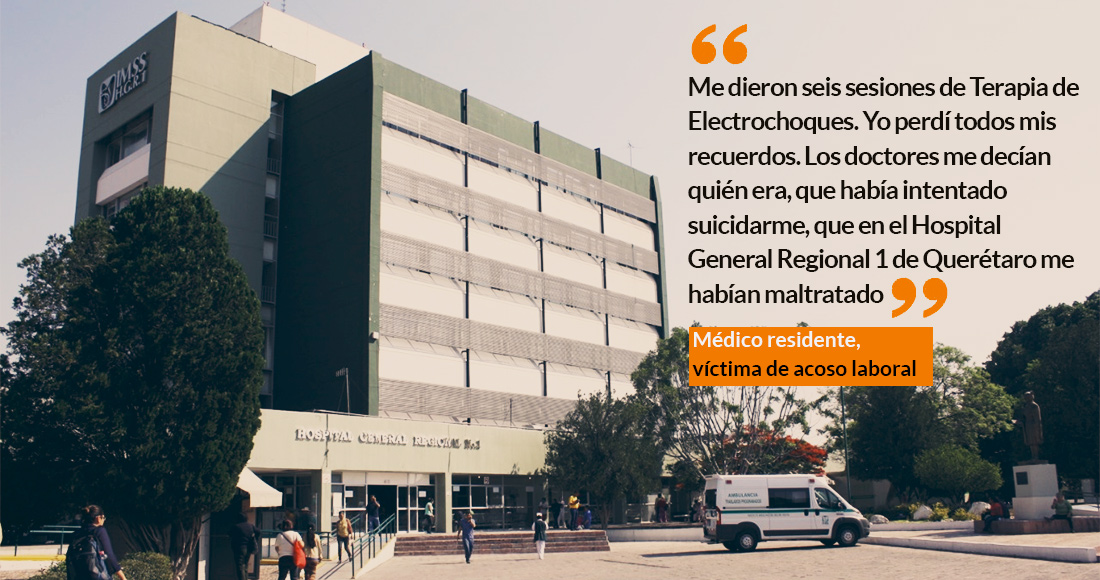 De acuerdo con el IMSS, en la Terapia de Electrochoque contra casos de depresión e intentos suicidas se hace una descarga eléctrica al paciente para generar una convulsión que dura entre 20 y 40 segundos, con la cual se provoca la descarga masiva e inmediata de neurotransmisores. A una médico residente se la aplicaron durante seis sesiones, luego de sufrir acoso laboral de la Jefa de Servicios de Urgencias y la Jefa de Enseñanza en el Hospital General Regional 1 de Querétaro.