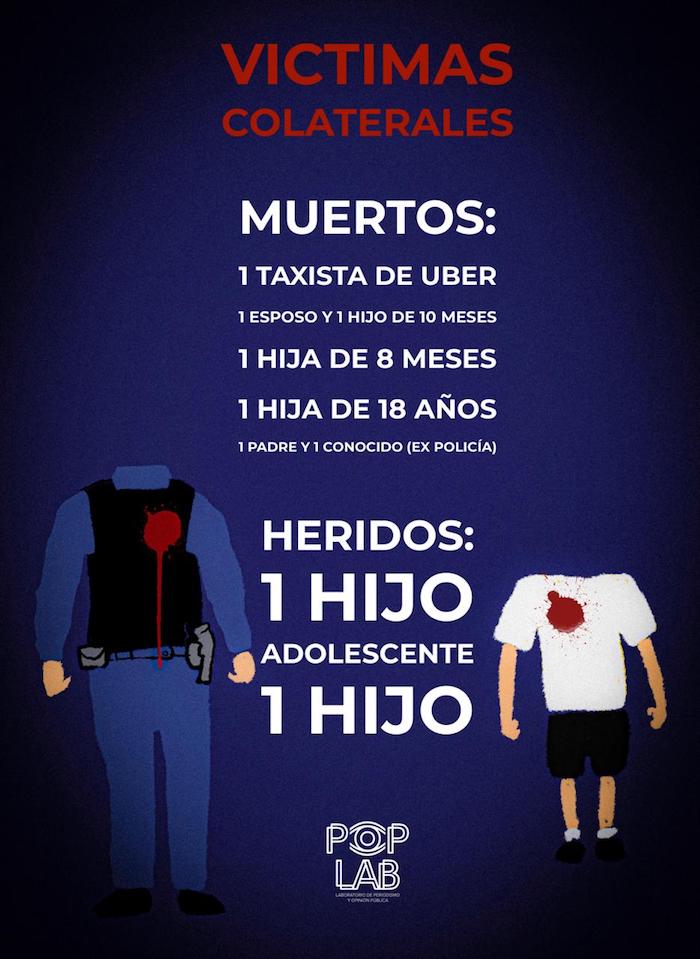 Fueron en su mayoría balas de armas de asalto, como la AK-47 y la R-15, las que del 3 de enero al 29 de octubre, cobraron la vida de cuarenta y ocho policías municipales, estatales, ministeriales, custodios del Cereso, directivos, e incluso un guardia nacional y un militar, asesinados en el cumplimento de su deber o al dirigirse a su casa después de trabajar. Hay quien fue atacado en su día de descanso, llevando a sus hijos a la escuela, jugando con su bebé en el parque. Estos atentados cobraron otras siete víctimas colaterales, entre los que, además de parientes, está un conductor de Uber que llevaba a un oficial a su casa.