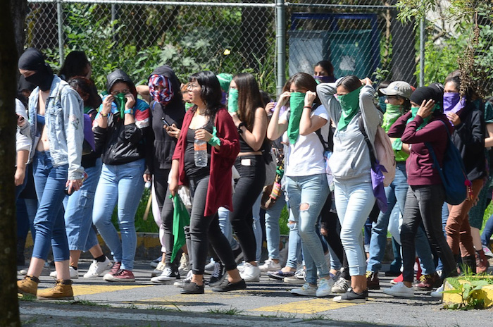 Personal de Protección Civil de la UNAM cercaron a los estudiantes para evitar algún tipo de confrontación con las manifestantes.
