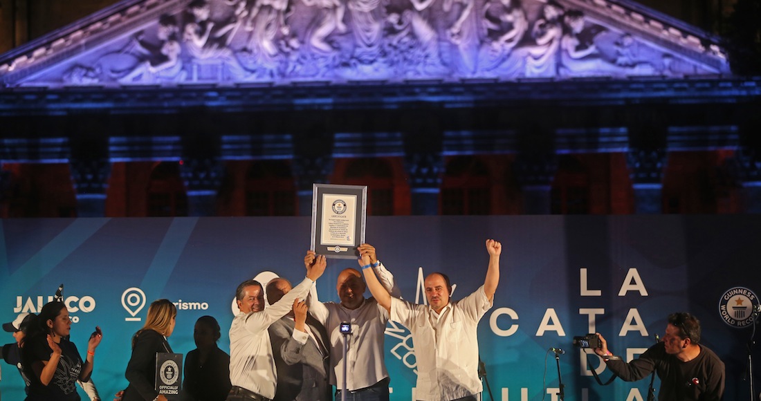 "Estamos muy contentos porque hemos logrado romper un récord Guinness de un taco de 102 metros de largo y esto se logró gracias a las secretarías, a escuelas de gastronomía y todos felices", dijo el chef Aarón Chávez.