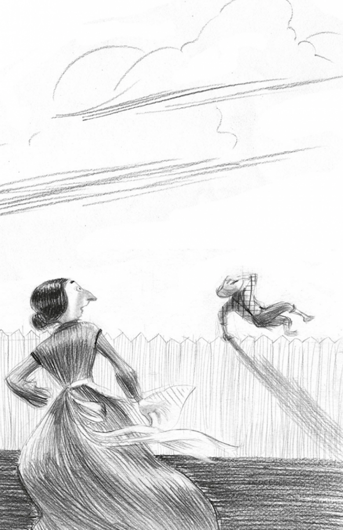 La anciana se dio la vuelta enseguida, asiéndose las faldas para apartarlas del peligro. Entretanto el muchacho se escapó, saltando por el alto vallado de estacas, y desapareció. La tía Polly se quedó unos instantes perpleja y luego se echó a reír suavemente.