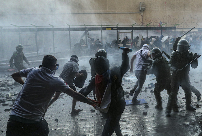 La policía chilena se enfrenta con manifestantes antigubernamentales durante una protesta en Santiago de Chile el martes 12 de noviembre de 2019. Foto: Esteban Felix, AP