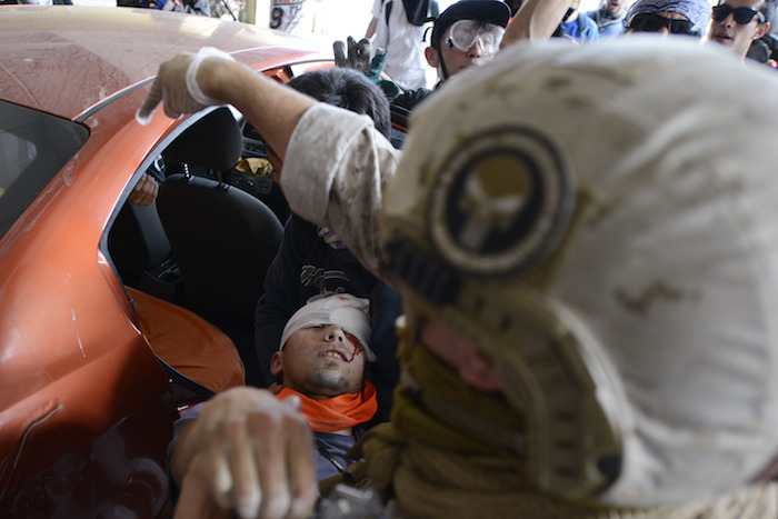 En esta foto de archivo del 25 de octubre de 2019, un manifestante herido durante enfrentamientos con la policía es llevado a un carro en Valparaíso, Chile. Foto: Matías Delacroix, Archivo, AP