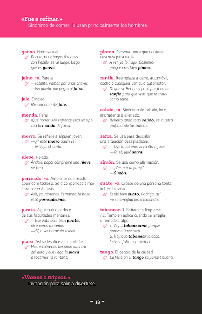 Todas ellas eran de uso exclusivo de la capital, como pude comprobar después, ya que al viajar y ampliar mis estrechos horizontes culturales descubrí otras que significaban cosas totalmente distintas o cuyo significado desconocía completamente como el verbo «cucar» que aprendí en Guadalajara... y no hablemos ya de viajar a otros países donde también se hablaba «español» como en la Argentina donde el dilema televisivo que marcó generaciones era «la torta de jamón» del Chavo del 8, toda vez que allá, la referida «torta» es lo que nosotros conocemos como «pastel» o lo que nosotros llamábamos «cajeta» para ellos era «dulce de leche», dejando al producto orgullosamente guanajuatense con un significado realmente extraño que por estar en horario de protección al menor no puedo reproducir en estas páginas.