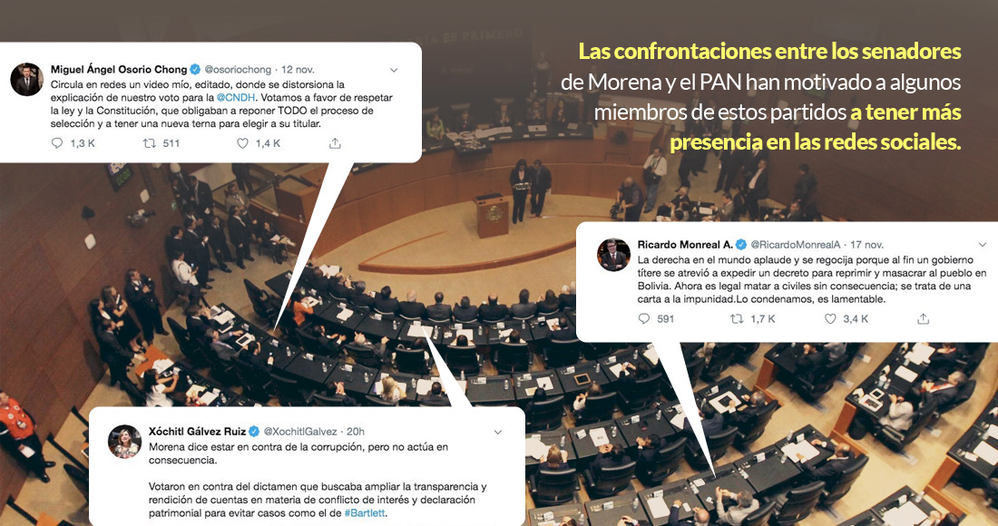 #MetaDatos | Senadores como Citlalli Hernández de Morena y Xóchitl Gálvez del Partido Acción Nacional ejemplifican el cambio de comunicación que ha implicado la agenda que las redes sociales han comenzado a asumir en este sexenio. La tensión que se ha desatado entre las fracciones ha migrado a la esfera digital, donde cada vez es más común que los legisladores participen de manera personal, retuiteen menos contenido, respondan preguntas y confronten a sus adversarios.