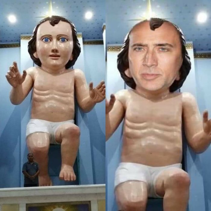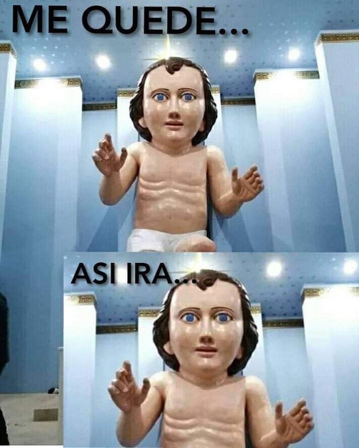 La estatua gigante de un Niño Dios que fue instalada en una iglesia de la comunidad de Zóquite, en el estado de Zacatecas, ha provocado que las redes sociales estallen con una ola de memes protagonizados por la enorme figura religiosa, misma que ha sido comparada con Nicolas Cage, con titanes de series televisivas, y recordó un clásico: “El pasito perrón”.