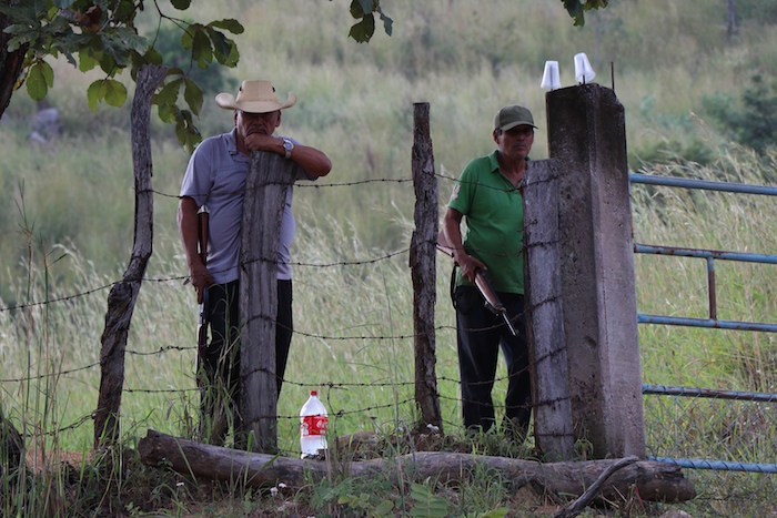 En el entronque del camino que va a la comunidad de San Rafael, un grupo de pobladores con escopetas se organizaron en resistencia para impedir que los delincuentes adueñen de su patrimonio.