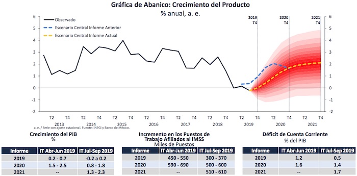 Sin embargo, el reflejo de la debilidad de distintos componentes de la demanda agregada, como la revisión más reciente del PIB del tercer trimestre de 2019, que demostró un estancamiento de la actividad económica, "luego de registrar ligeras caídas consecutivas entre el cuarto trimestre de 2018 y el segundo de 2019", la economía mexicana ha mostrado una holgura más rápida que lo previsto.