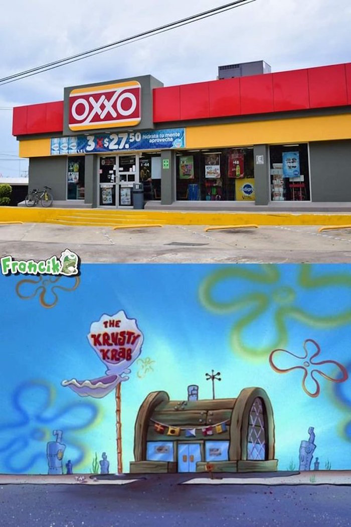 Ciudad de México, 28 de noviembre (SinEmbargo).– Usuarios de redes sociales volvieron virales imágenes en las que se observan las similitudes entre las tiendas Oxxo y el Crustáceo Cascarudo, restaurante en el que trabaja Bob Esponja, personaje de ficción.