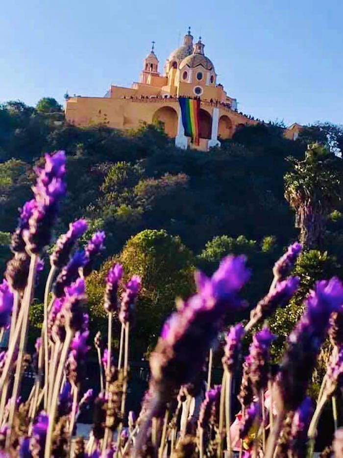 Puebla, 1 de diciembre (PeriódicoCentral).- La tarde de este sábado, activistas de la comunidad Lésbico Gay Bisexual Transgénero Transexual Travesti Intersexual (LGBTI+) colocaron una bandera arcoíris monumental en la iglesia de Los Remedios de Cholula.
