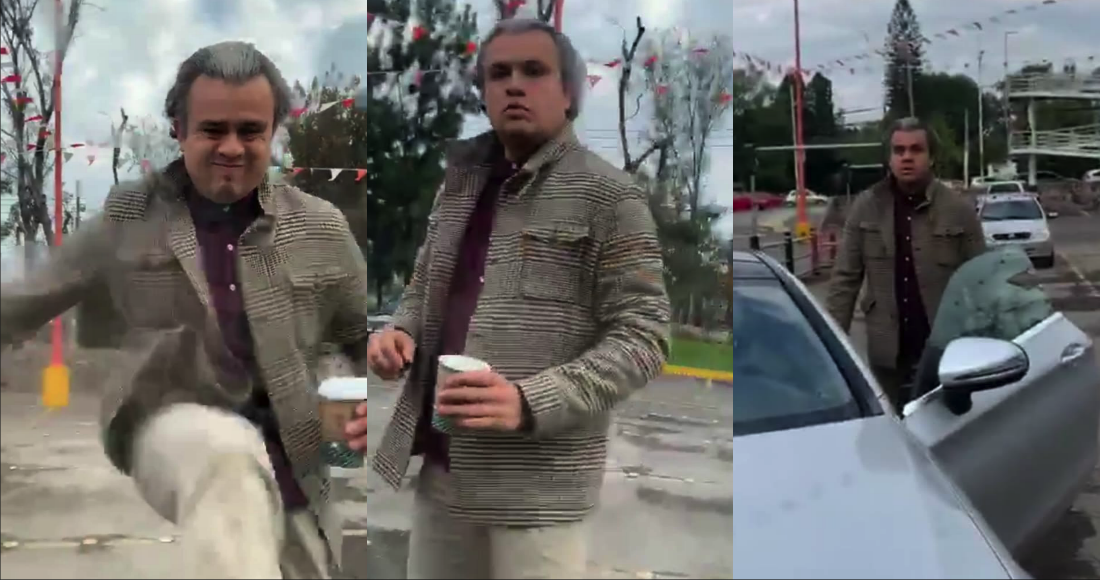 En el material que circula en redes, grabado por la víctima de la agresión, se observa al hombre pateando en múltiples ocasiones la puerta del conductor del vehículo de la mujer, esto mientras ella permanece en el interior y le dice que no va a salir.