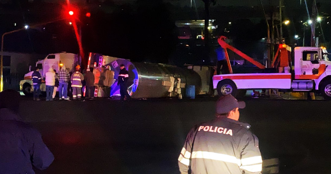 Los reportes preliminares indican que la pipa quedó atravesada de su lado derecho, lo que ocasionó que la vialidad resultara severamente afectada, por lo que las autoridades piden a los automovilistas tomar vialidades alternativas.